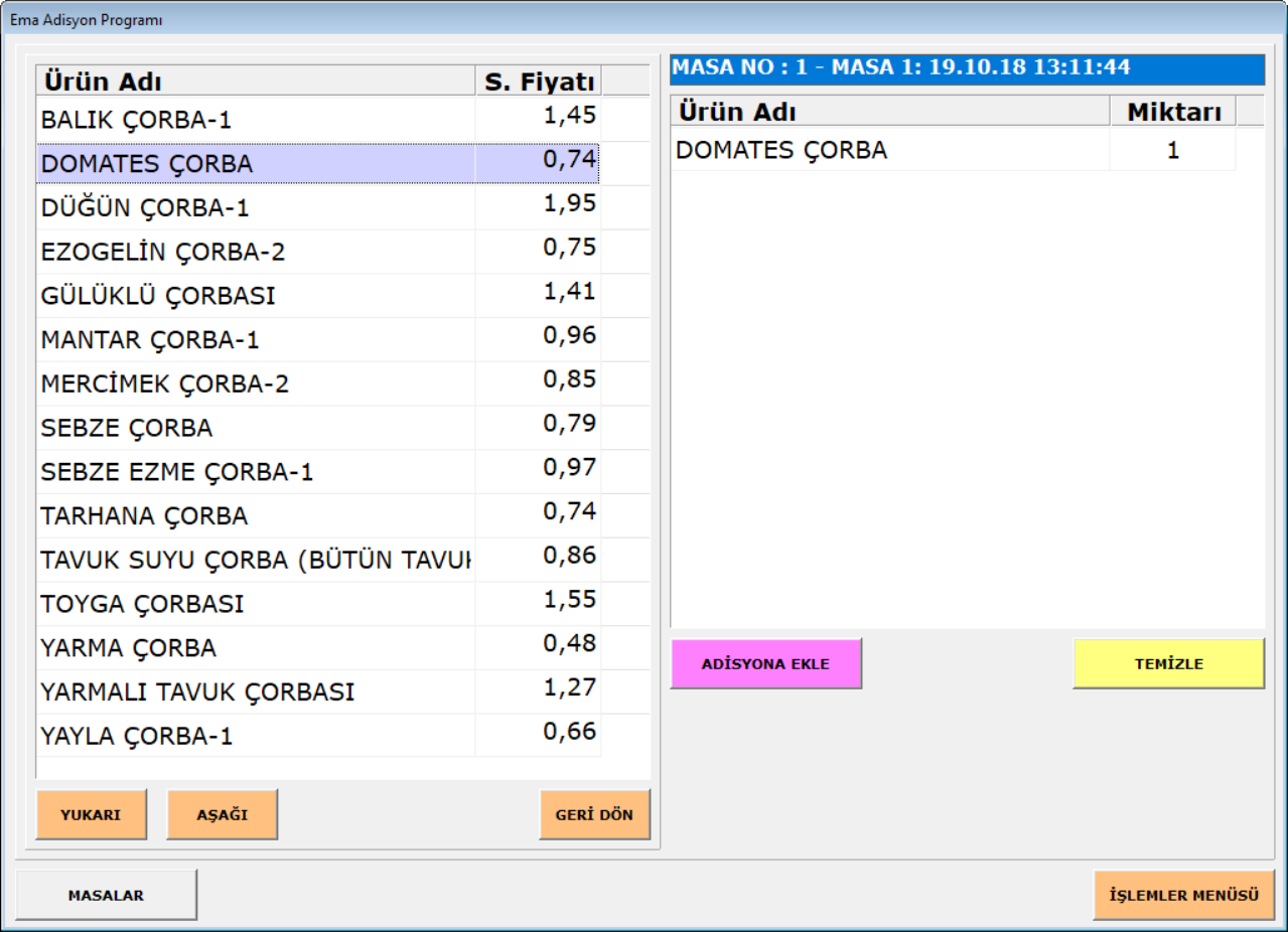 Üretim modülü ile muaddeler hazırlanır ve aylık planlamalar yapılarak günlük yemek listeleri hazırlanabilir. Gün sonunda ise lokanta cetvelleri sayesinde hasılat, fire, iade işlemleri yapılır. Ayrıca adisyon modülü için menüler hazırlanır.