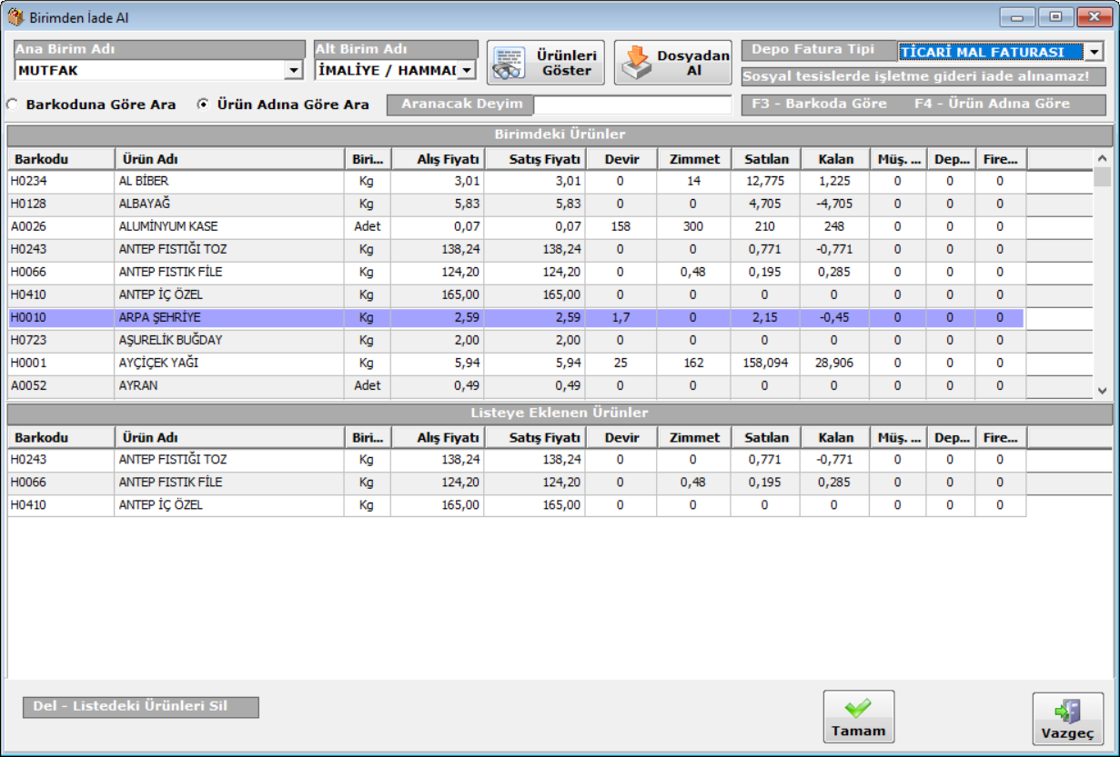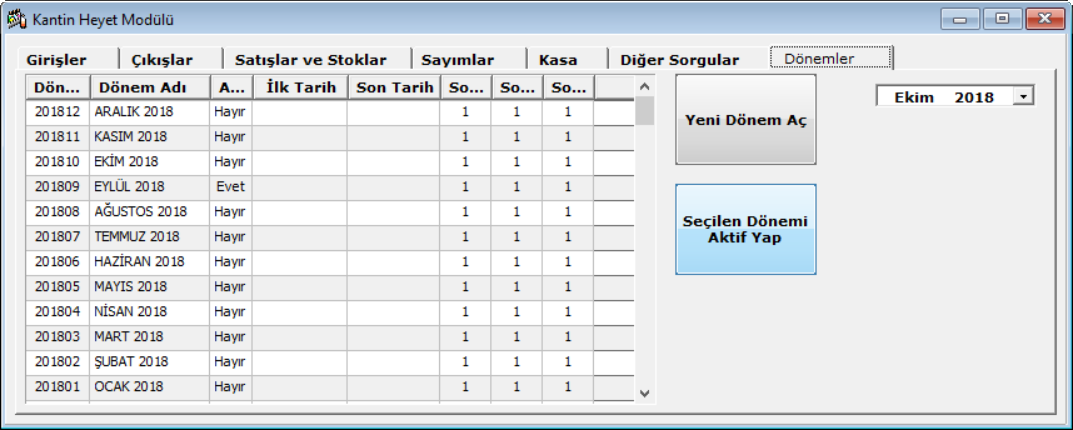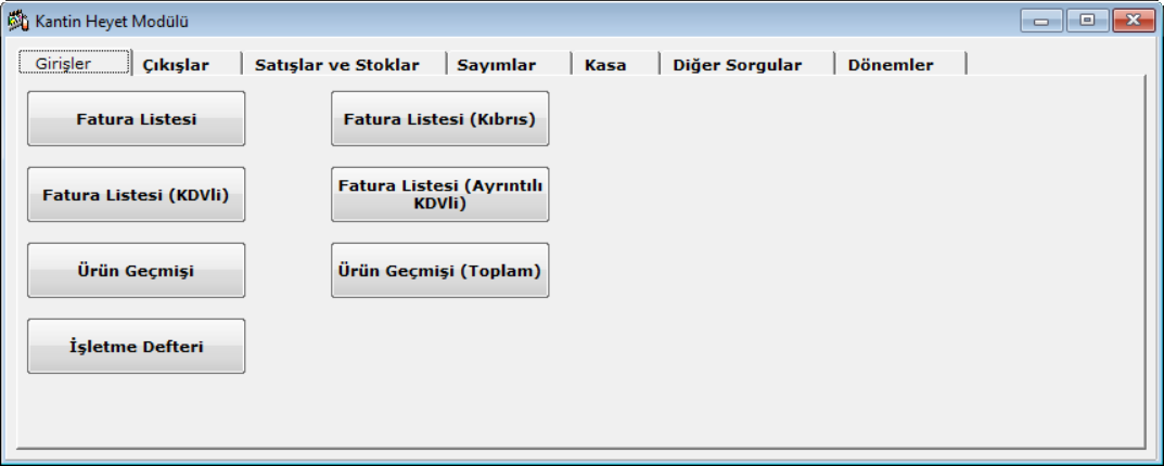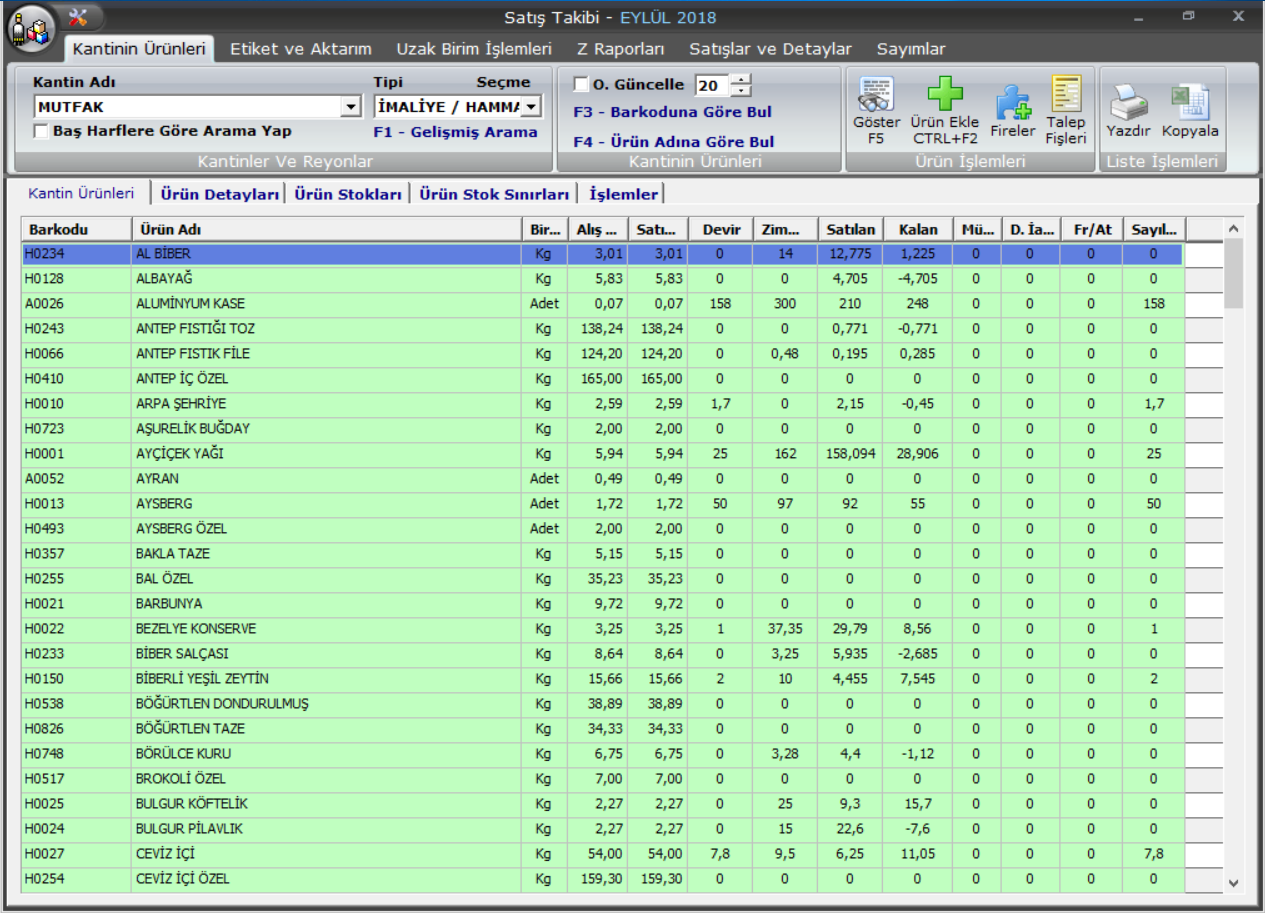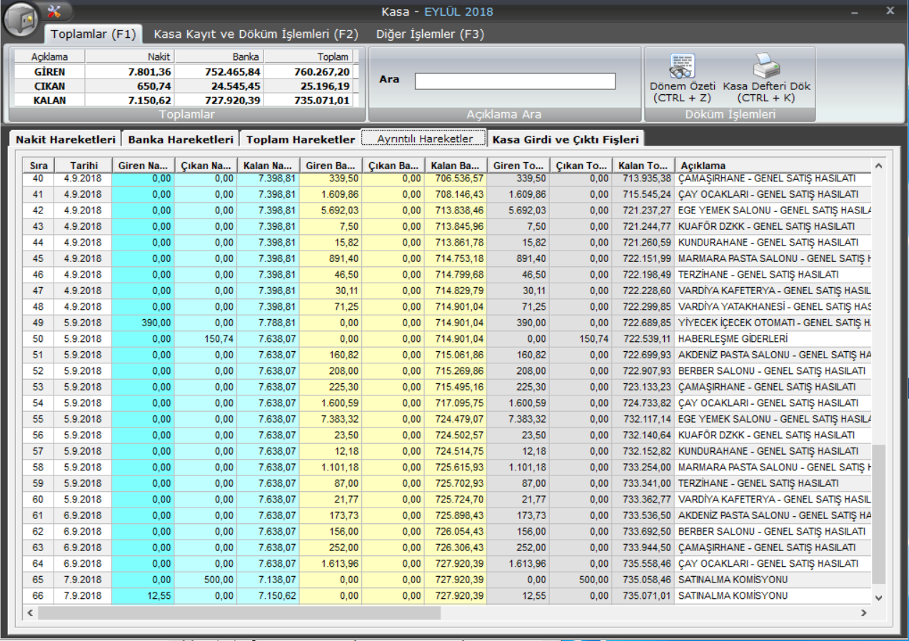 · Kantin/Reyon hasılatlarının kaydı ve özet dökümü yapılır,iki tarih aralığında istenen kantin/reyonun hasılat listeleri alınabilir.