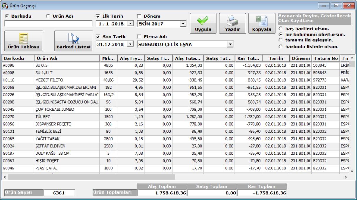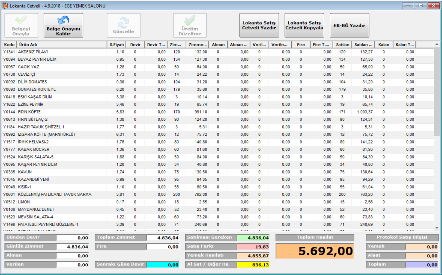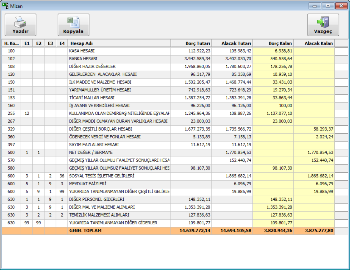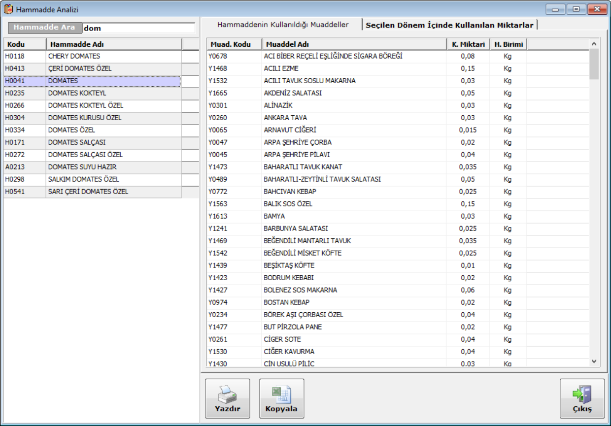 · Kantin/Reyon hasılatlarının kaydı ve özet dökümü yapılır,iki tarih aralığında istenen kantin/reyonun hasılat listeleri alınabilir.