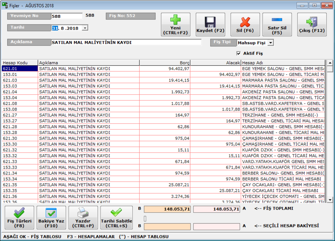 · Mevduat, Çek ve POS banka hesapları(Bloke den çözülme tarihine göre)takip edilir, bankadan-bankaya, bankadan kasaya aktarımlar yapılabilir ve ekstreleri listelenerek dökümü alınır.