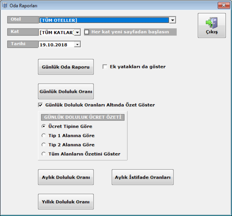 · Kantin/Reyon hasılatlarının kaydı ve özet dökümü yapılır,iki tarih aralığında istenen kantin/reyonun hasılat listeleri alınabilir.