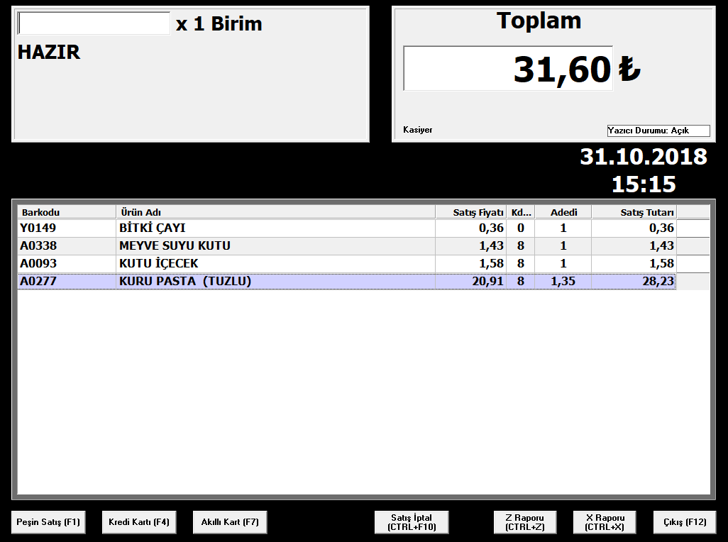 Sistem her bir kasa için 1 pc, 1 masa tipi laser barkod okuyucu, fiş yazıcıi LED Ekran ve güç kaynağından oluşmakta, para çekmecesi opsiyoneldir. Satış noktasındaki kasiyerin herhangi bir şekilde satışı yapılan ürünün barkodu,adı,satış-alış fiyatı,satılan,alınan ve kalan adet gibi bilgilere müdahalesi mümkün değildir. Sistem ilk giren ilk çıkar yöntemini uygulamakta, depodan gelen aynı isim ve barkoda sahip ancak farklı satış fiyatı olan ürünleri kaç farklı fiyatta olursa ilk giriş sırasına göre stoğu bittikçe otomatik olarak bir sonrakine geçerek satışını gerçekleştirmektedir. Sistem stok sayarak satış yaptığı için stokta biten ürün ya da tanımlanmamış veya depodan zimmet çıkmamış ürünün satılması mümkün değildir. Bu da kötü niyet veya suistimal amacıyla dışarıdan ürün sağlanıp satılmasını engellemektedir. Satış kasasının ekranı 15'' lcd mönitör olup, alınan tüm ürünler müşteri tarafından ekranda izlenebilmekte, buda müşteri güvenini ve memnuniyetini sağlamaktadır. Sistem yapı itibariyle istenildiği an merkez tarafından kontrol edilmekte ve insan faktörü satış işleminin dışında yer almamaktadır.