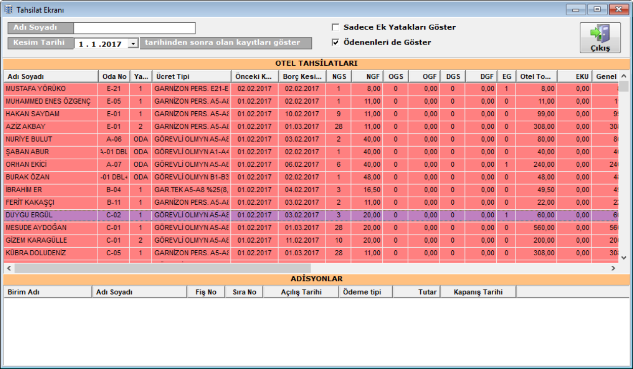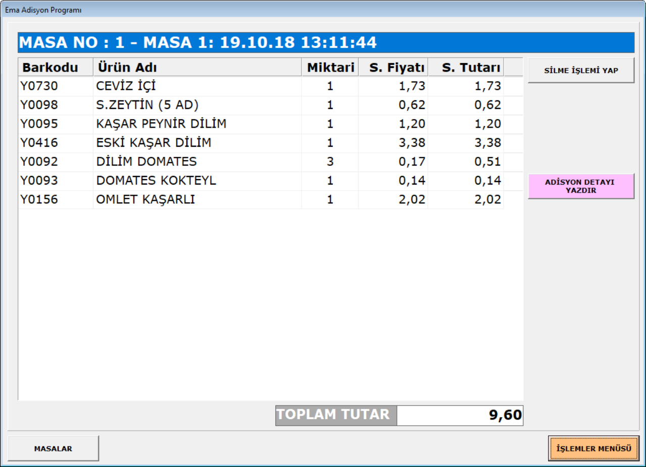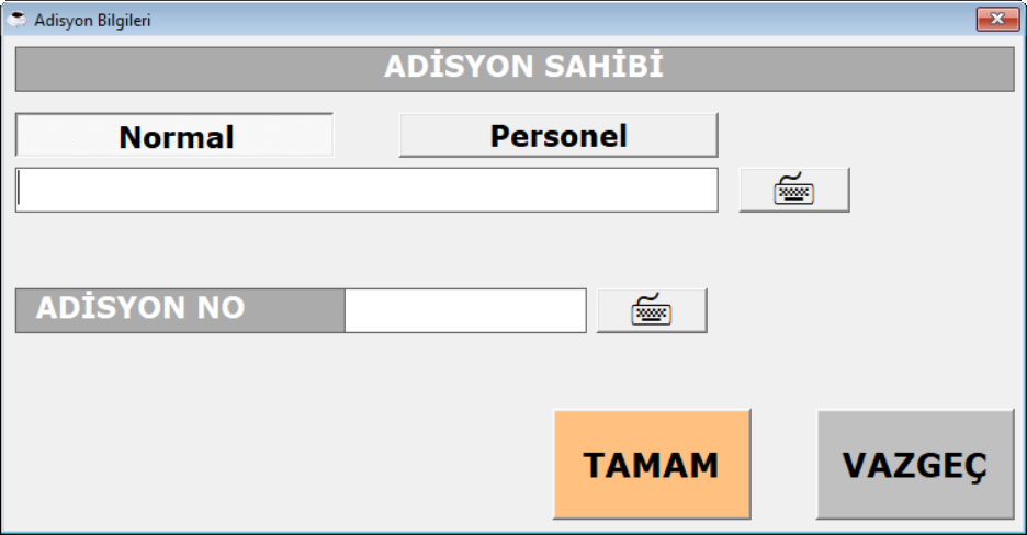 Adisyon programı, tesisin işletmelerinde masa / self servis / tabldot usülü satış yapmak için hazırlanmış modüldür. Kullanıcı, kurulum tipine göre aynı anda birden fazla adisyon açabilir ve bunları takip edebilir. Ayrıpersonel indirimi ve garson paylı satışı uygulayabilir. Gün sonunda alınması gereken tüm raporları detaylı olarak verir.