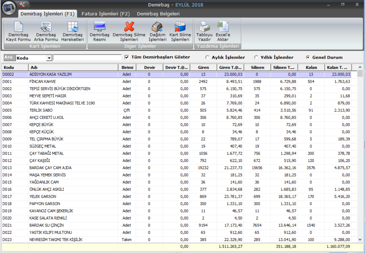 Her an önceki çıkışları kontrol edebilir, depoda kalan malların listesini alabilir. Mal dağıtımını yaptığımız anda "MAL GİRİŞ ÇIKIŞ BELGESİ" ile dağıtımını yaptığımız malı yönetmeliğe uygun olarak belgeleyebiliriz. İstenildiği an AMBAR DEFTERİ dökümü tek ürün bazında veya genel olarak alınabilmektedir. Aylık dönem içinde zimmet çıkılan bütün kantinler/ reyonlar özet halinde dökümü alınabildiği gibi geçmiş dönemlerde seçilerek ambar hareketlerinin özet dökümü alınmaktadır. Kantinler arası mal hareketlerinde de Depo modülü havuz işlevi ile geri alınan malın tekrar farklı kantin/reyona dağıtımını yapar ya da depo mevcudunda tutar.