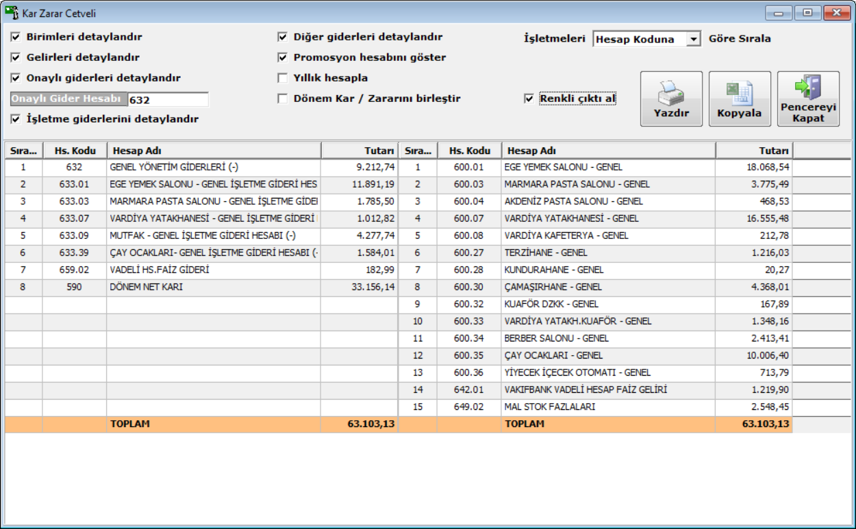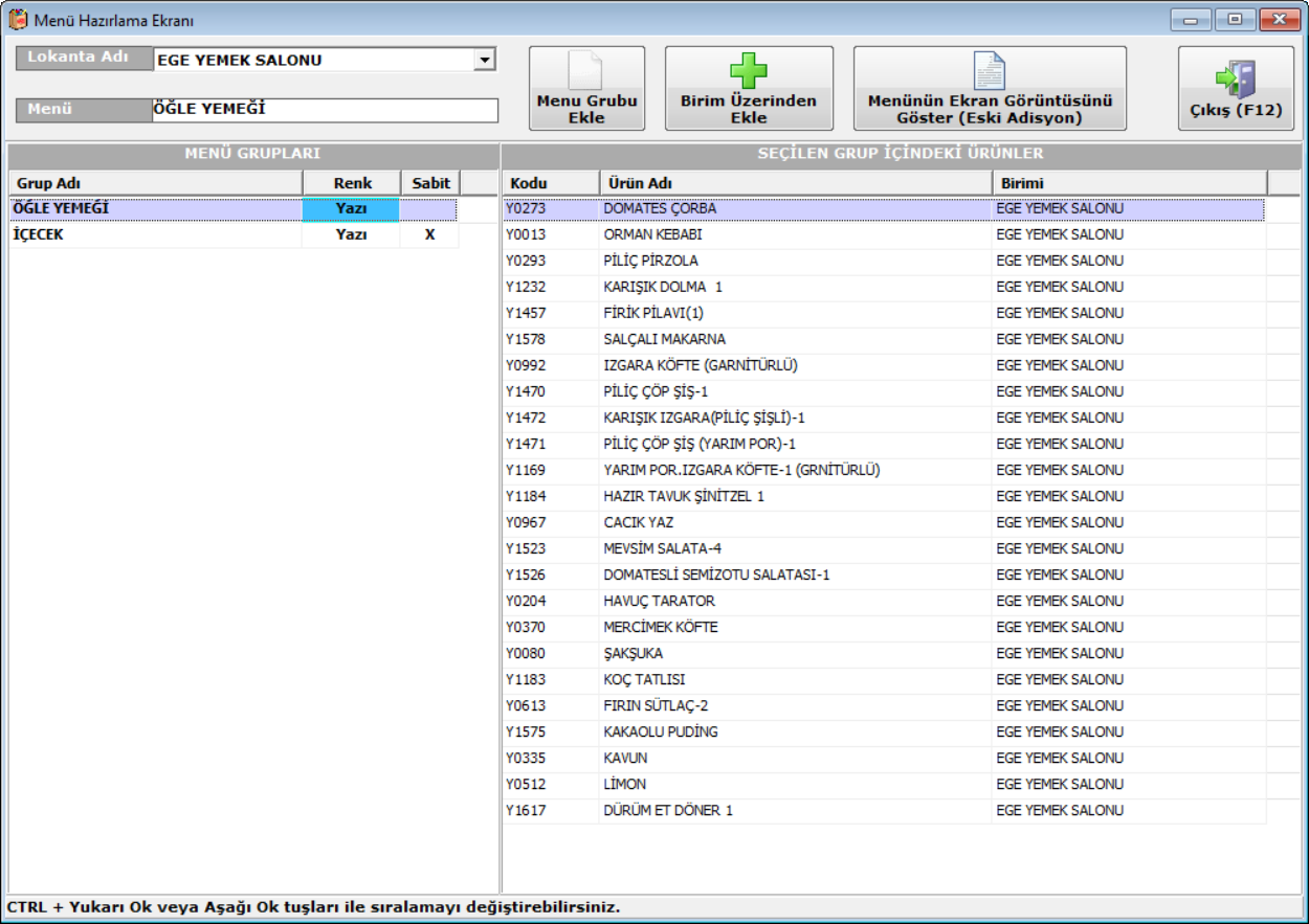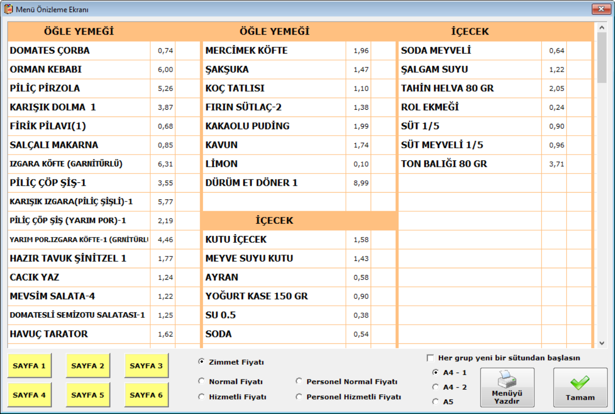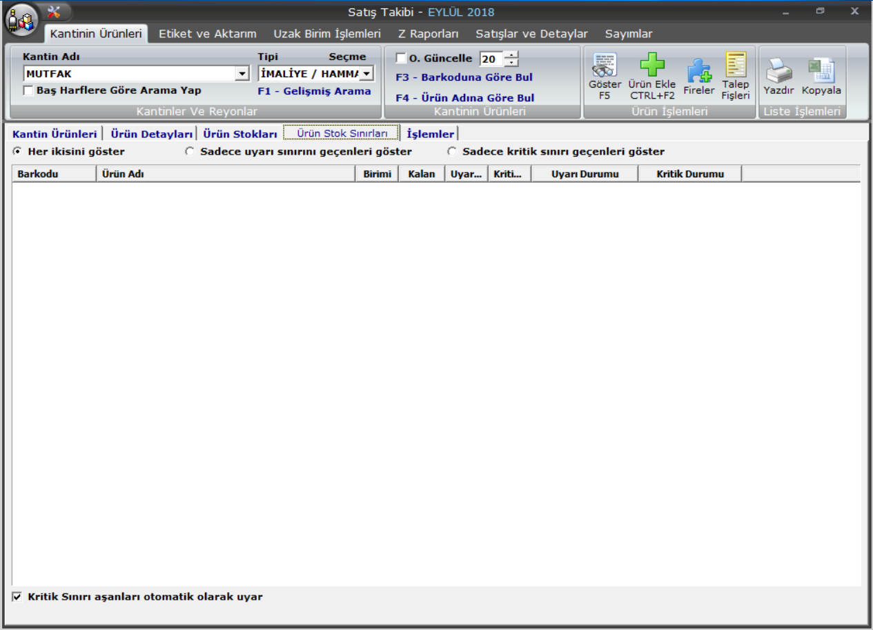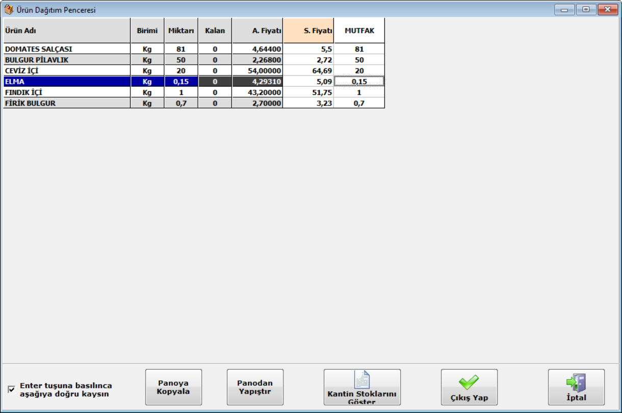 · Kantin/Reyon hasılatlarının kaydı ve özet dökümü yapılır,iki tarih aralığında istenen kantin/reyonun hasılat listeleri alınabilir.