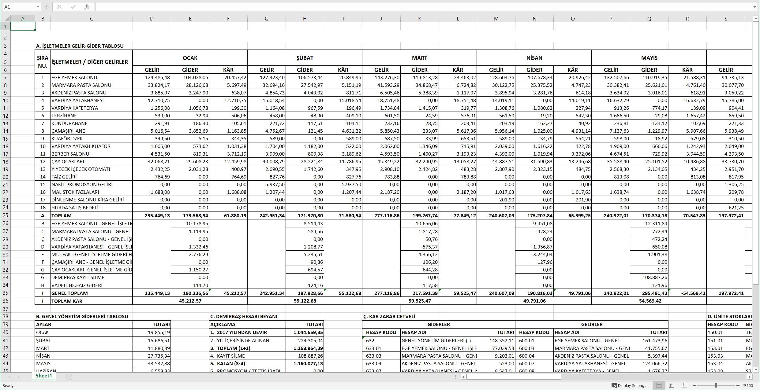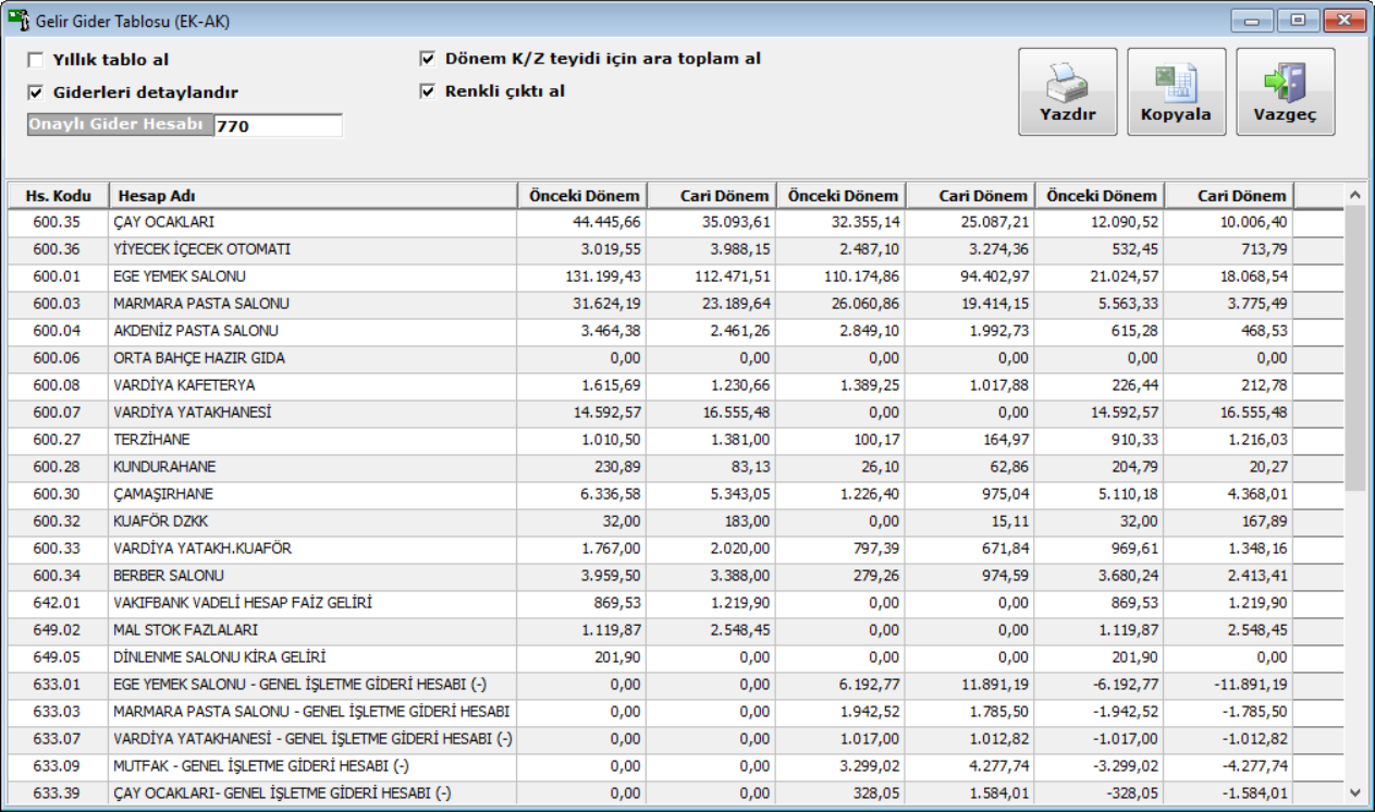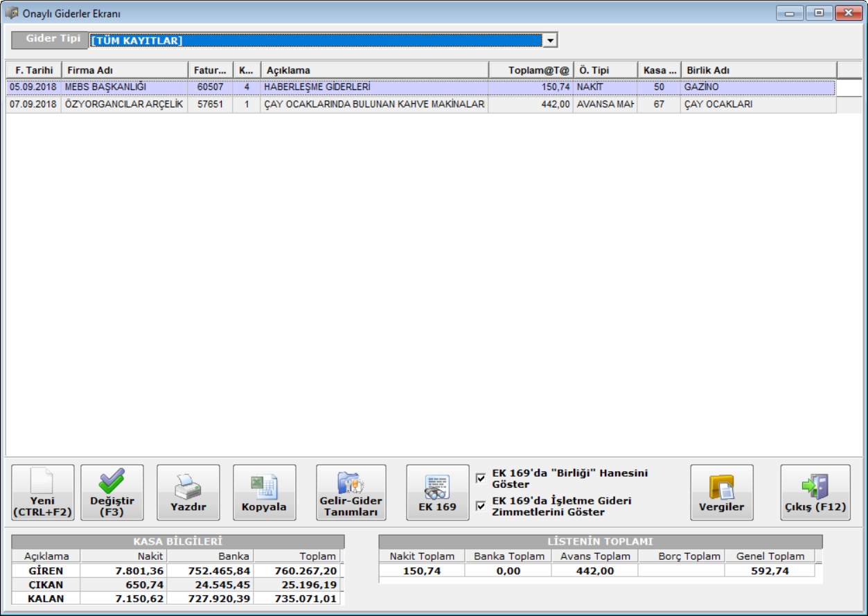 · İşletme giderleri ve onaylı giderler kaydedilir, listesi alınabilir.