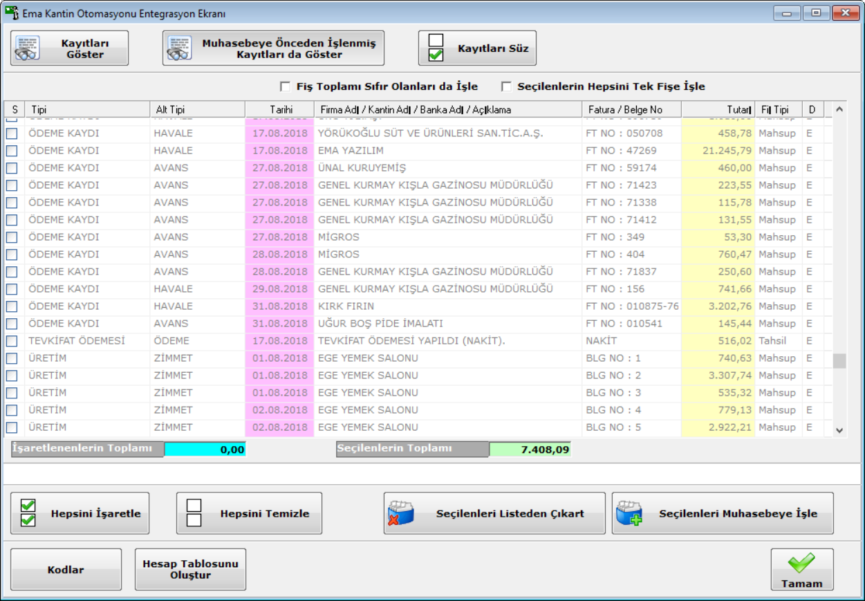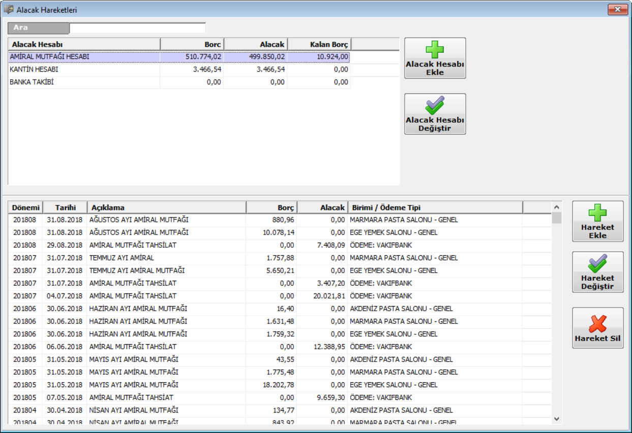 · Mevduat, Çek ve POS banka hesapları(Bloke den çözülme tarihine göre)takip edilir, bankadan-bankaya, bankadan kasaya aktarımlar yapılabilir ve ekstreleri listelenerek dökümü alınır.