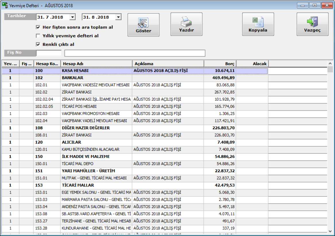 · KASA GİRDİ-ÇIKTI FİŞLERİNİ ve yönetmelikte belirtilen formattaki KASA DEFTERİNİ döker.