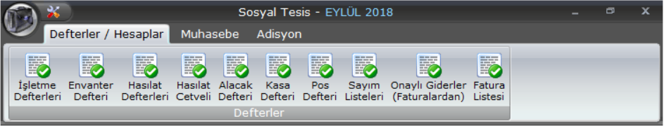 Heyet modülünden ayrıca Sosyal Tesislerin işletme defterleri, kasa defteri, hasılat cetvelleri ve defterleri, sayım listeleri ve adisyon programı ile yapılan satışların detayları takip edilir. Demirbaş listeleri ve silme işlemleri bu modül ile takip edilir.